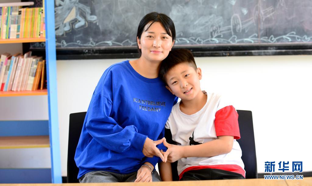 5月27日在河北省顺平县神南镇赵家台村赵家台小学拍摄的苑芷菡和教师赵松梅。