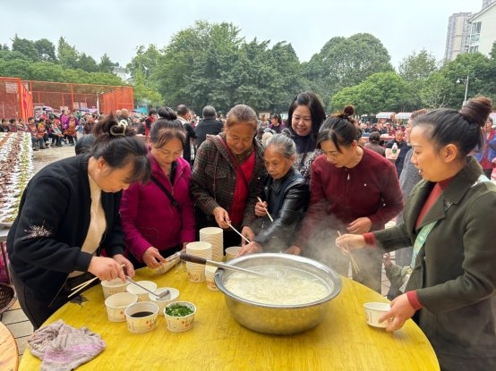 宴席开始时,62桌杯子同时举起,碰响的是“慢些吃”的叮嘱,是“明年还来”的约定。这场坝坝宴,哪里只是一顿饭?它是常青藤志愿者用行动写的“敬老诗”——不喊口号,只搭桌子;不图留名,只递热汤。重阳的意义,从来不在登高插茱萸的形式,而在“老吾老以及人之老”的传承。这个重阳,温泉社区的常青藤志愿服务队告诉我们:最好的孝道,是让爱循环;最美的夕阳,是被一群人放在心尖上疼。
