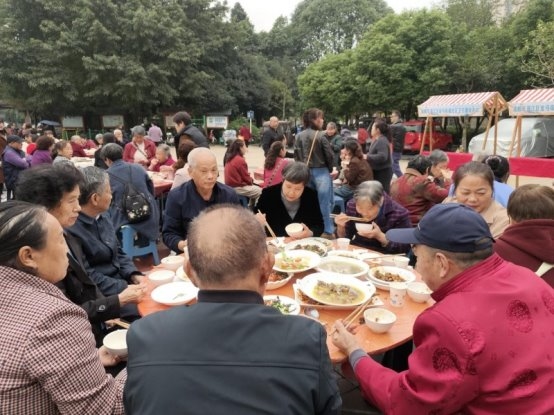 2025年10月29日由温泉社区居民委员会主办、成都心家园社会工作服务中心承办的温泉社区“金心为您·微光聚力”社区志愿服务项目金心创益之耆老共食·邻里情浓坝坝宴活动在温泉社区常青藤志愿服务队的精心策划下,温江区中医院、金马街道卫生院、成都农商银行温江金马支行及社区爱心企业、爱心人士的大力支持下顺利开展。社区600余位居民参与其中。